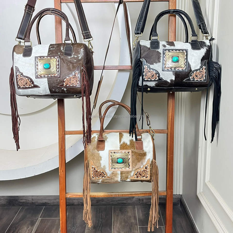Hand Tooled Cow Leather Speedy Crossbody Duffel Bag