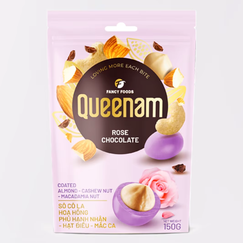 ถั่วแมคคาเดเมียแข็งเคลือบกุหลาบช็อคโกแลตถั่วอัลมอนด์เม็ดมะม่วงหิมพานต์เกรดพรีเมี่ยม150กรัม