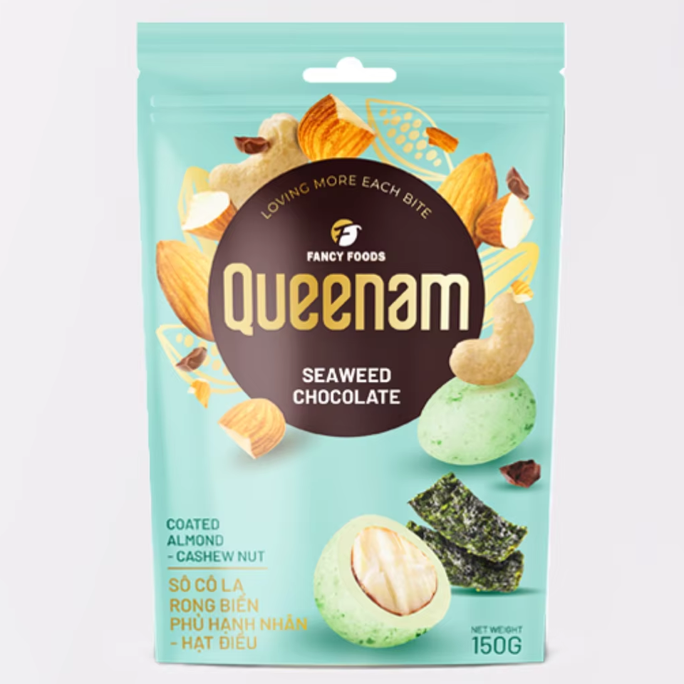 ขนมฮาลาลช็อกโกแลตสาหร่ายเคลือบอัลมอนด์เม็ดมะม่วงหิมพานต์150กรัมขนมเกรดพรีเมี่ยม