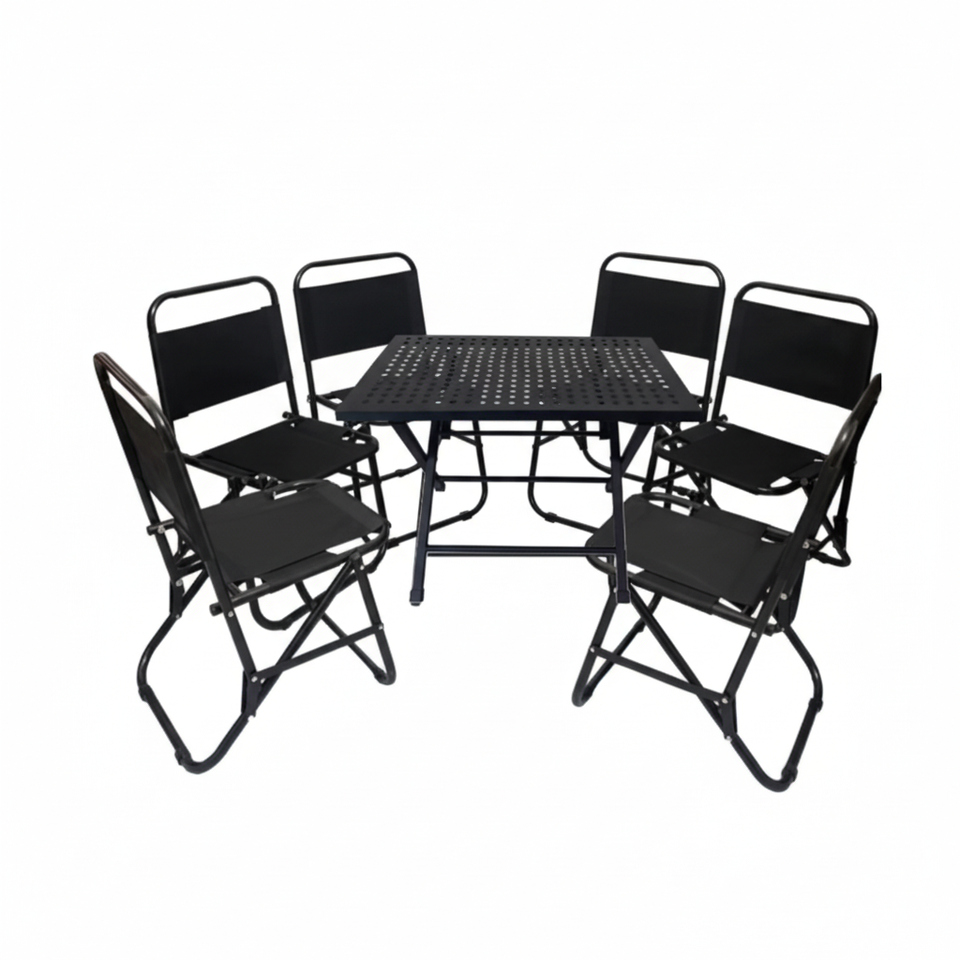 ชุดโต๊ะและเก้าอี้สแตนเลสพับได้พร้อมผ้าแคนวาสพรีเมี่ยม OM/odm
