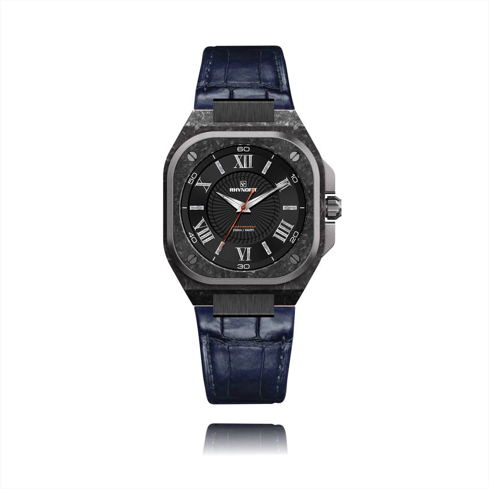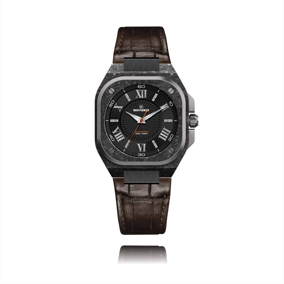 นาฬิกาข้อมืออัตโนมัติ NH35 แบรนด์ส่วนตัว OEM/ODM โลโก้สั่งทำ ตัวเรือนคาร์บอนไฟเบอร์ เข็มเรืองแสงพิเศษ สายหนังแท้
