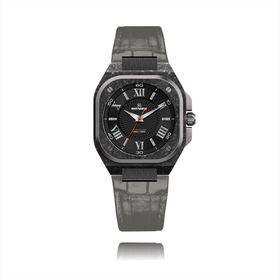 นาฬิกาข้อมือ OEM/ODM แบรนด์ส่วนตัว โลโก้สั่งทำพิเศษ กลไกอัตโนมัติ NH35 ตัวเรือนคาร์บอนไฟเบอร์ เข็มเรืองแสงพิเศษ สายหนังแท้