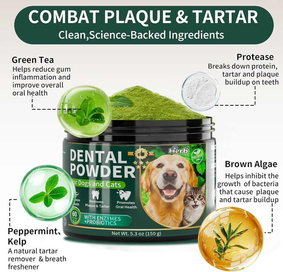 ผงทำความสะอาดฟันสุนัขแบบส่วนตัวมีเป้าหมายผสมสมุนไพรทาร์ทาร์และลดคราบจุลินทรีย์และกลิ่นปากสำหรับสุนัขและแมว