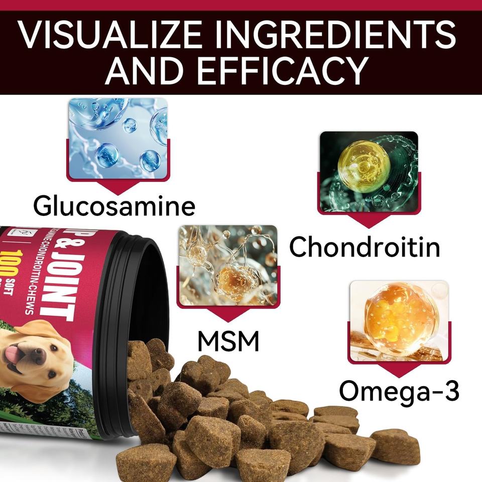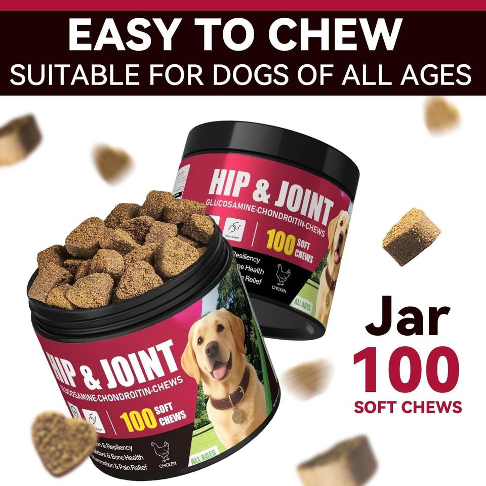 อาหารเสริมบำรุงข้อและกระดูกสำหรับสุนัขแบบ OEM ODM - บรรเทาอาการปวดข้อ - กลูโคซามีน คอนดรอยติน ขมิ้น แบบเคี้ยวเนื้อนุ่ม