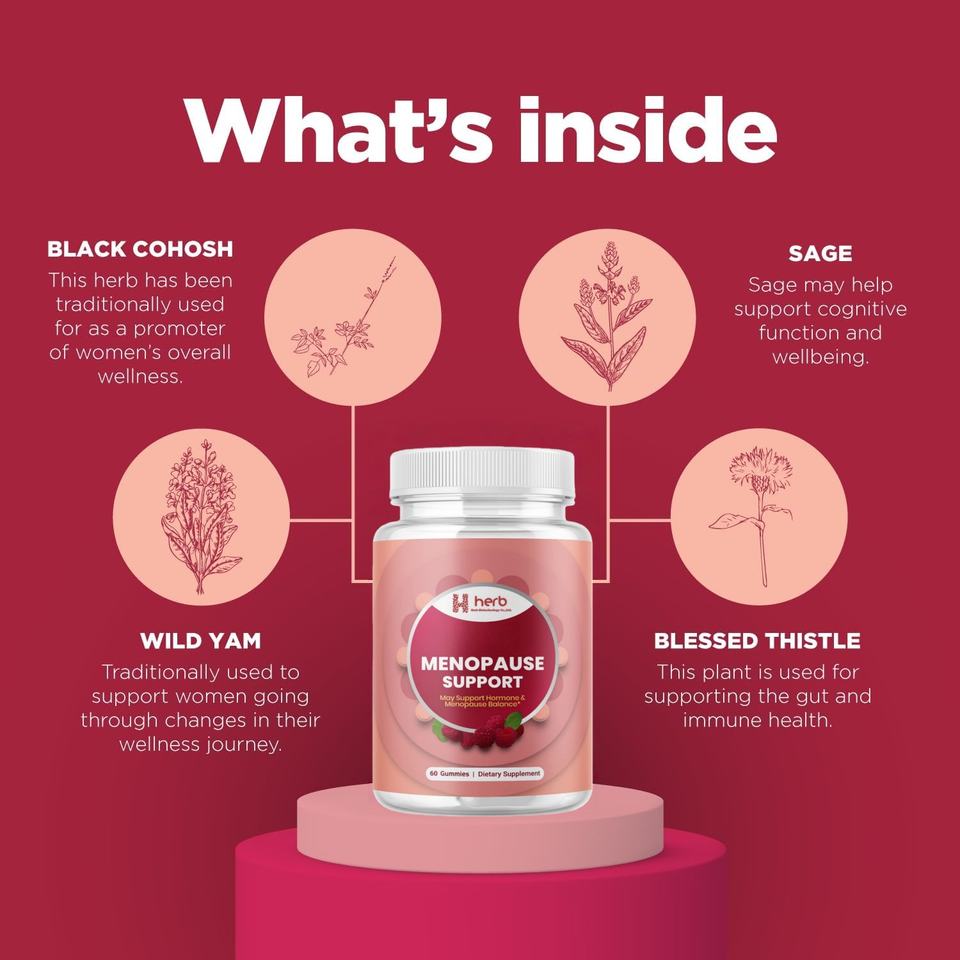 วิตามินเสริมสำหรับผู้หญิงวัยหมดประจำเดือน OEM ODM แบรนด์ส่วนตัว ช่วยบรรเทาอาการและเสริมภูมิคุ้มกัน ประกอบด้วยแบล็คโคฮอช ไวลด์ยัม และเรดโคลเวอร์ บรรจุ 60 เม็ด
