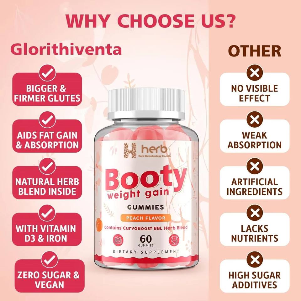 กัมมี่เสริมสะโพกสำหรับผู้หญิง OEM ODM แบรนด์ส่วนตัว, กัมมี่ BBL ผสมสาร Curva Boost