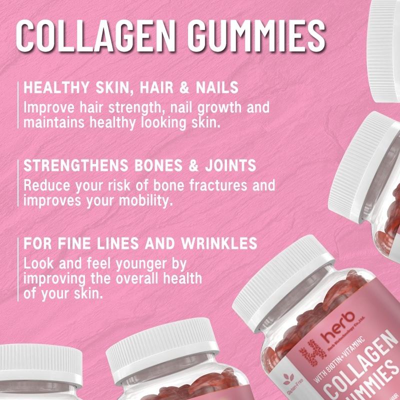 คอลลาเจนกัมมี่แบบ OEM/ODM แบรนด์ส่วนตัว ผสมวิตามินรวม บำรุงผม ผิว เล็บ ช่วยลดเลือนริ้วรอย สำหรับผู้ใหญ่