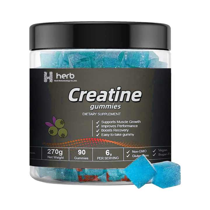 อาหารเสริมแบบรวมส่วนผสมสำหรับผู้ใหญ่ OEM/ODM แบรนด์ส่วนตัว ช่วยเสริมสร้างกล้ามเนื้อ เพิ่มพลังงาน ครีเอทีนโมโนไฮเดรตแบบกัมมี่ 120 เม็ด
