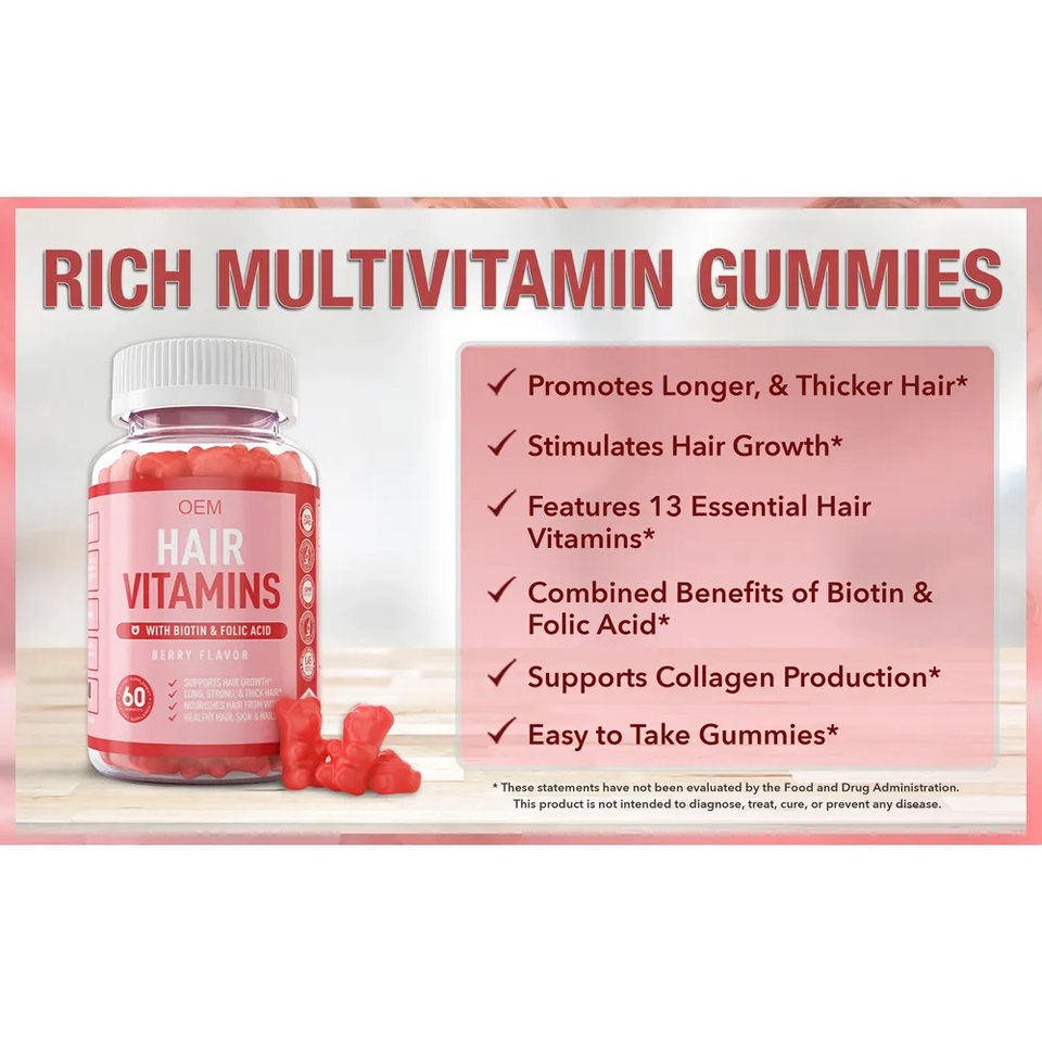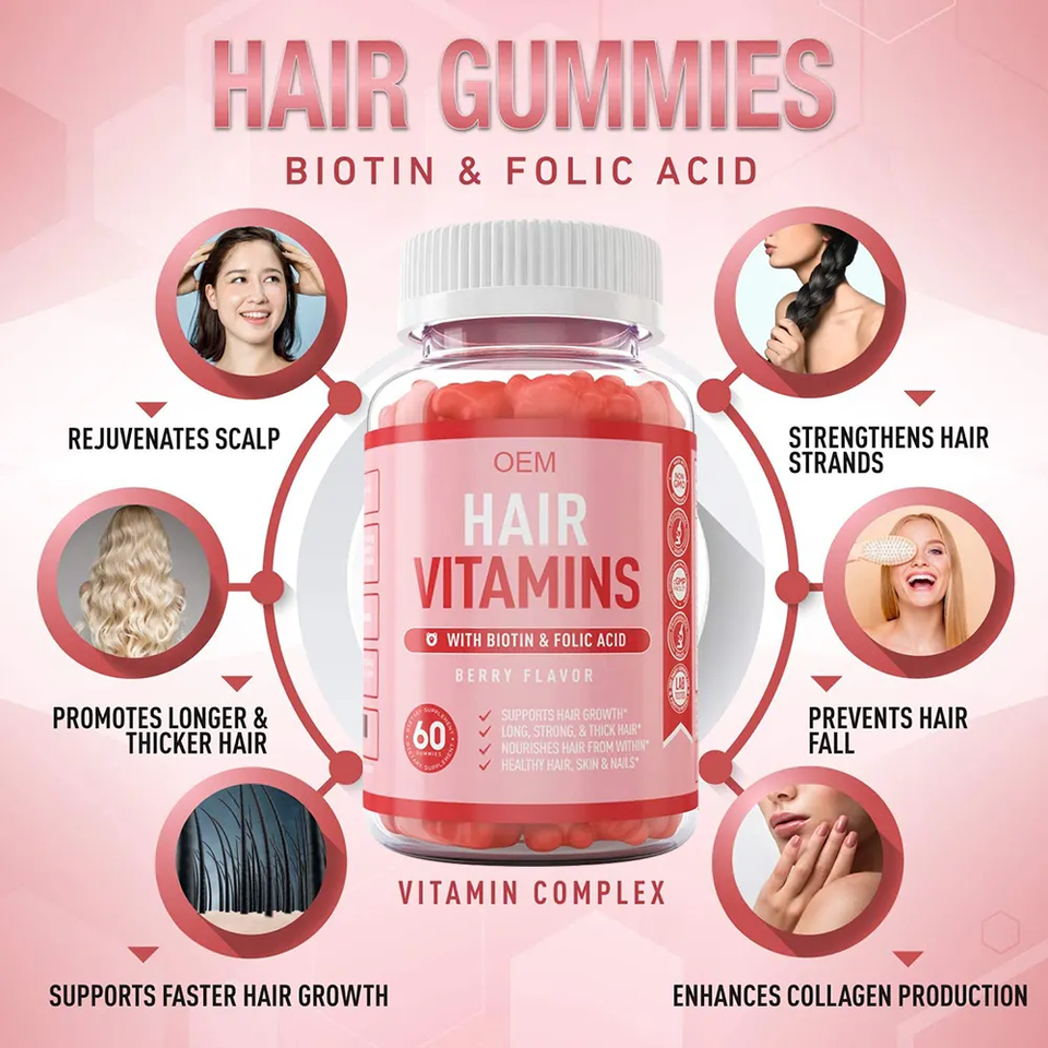 โรงงานผลิตวิตามินกัมมี่สำหรับผม เล็บ และผิวหนัง สูตรไบโอตินและกรดโฟลิก รับผลิตแบบ OEM/ODM และฉลากสินค้าส่วนตัว