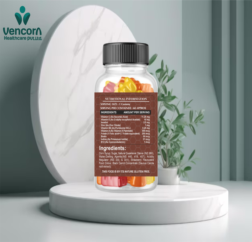 วิตามินกัมมี่แบบ OEM/ODM แบรนด์ส่วนตัว อุดมด้วยสารอาหาร วิตามินและแร่ธาตุรวม พร้อมไบโอติน วิตามินอี และไอโอดีน