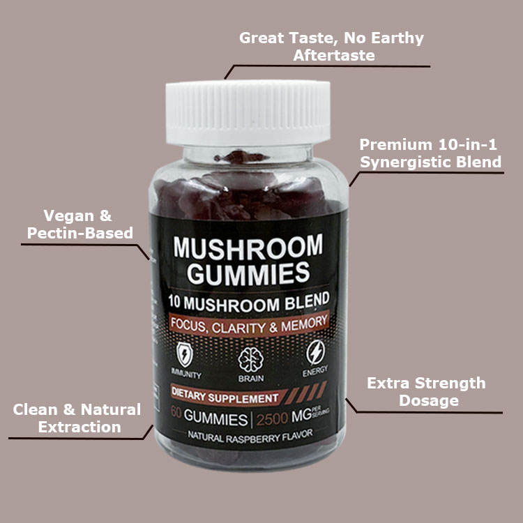 OEM/ODM Private Label Mushroom Gummies 10 Mushroom Complex 2500 mg Mushroom With Lion's Mane, Cordyceps, Shiitake, Reishi