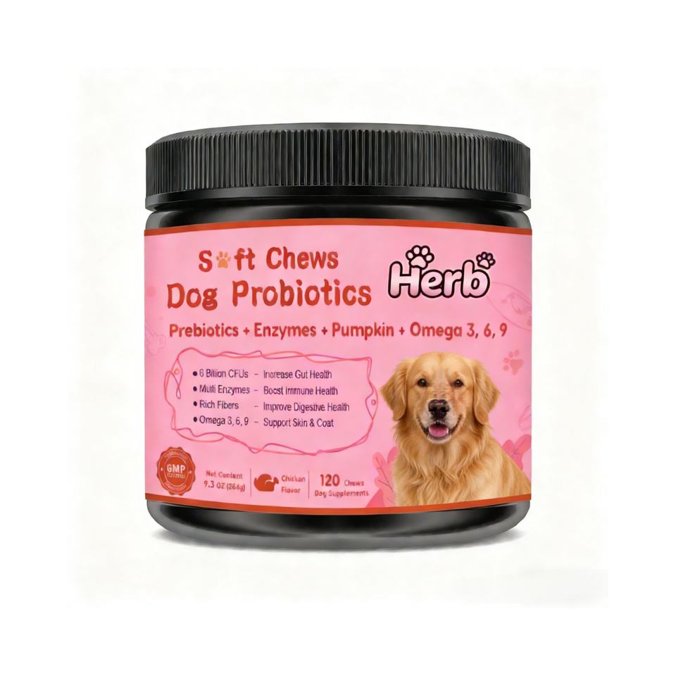 อาหารเสริมโปรไบโอติกแบบเคี้ยวเนื้อนุ่มสำหรับสุนัข สูตร OEM/ODM แบรนด์ส่วนตัว บำรุงสุขภาพลำไส้ น้ำมันปลา บำรุงผิวและขน วิตามินเสริม ช่วยระบบย่อยอาหาร