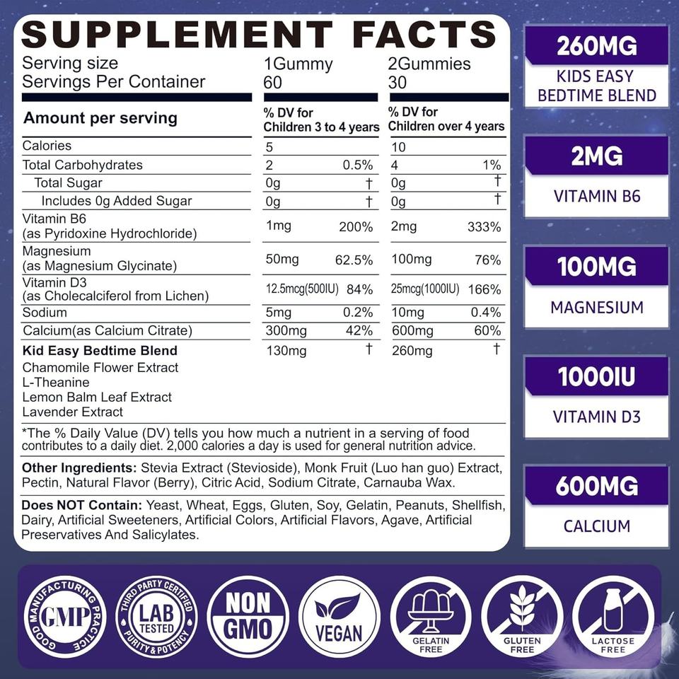 วิตามินกัมมี่สำหรับเด็กแบบออร์แกนิกวีแกน ปราศจากน้ำตาล ช่วยให้นอนหลับสนิท ผลิตแบบ OEM/ODM รับผลิตแบรนด์ส่วนตัว พร้อมเมลาโทนิน