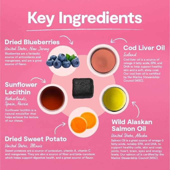 อาหารเสริมสุขภาพสัตว์เลี้ยงแบบเคี้ยวเนื้อนุ่ม รสแซลมอน สำหรับบำรุงผิวหนังและขน ผลิตแบบ OEM/ODM รับผลิตภายใต้แบรนด์ของคุณ