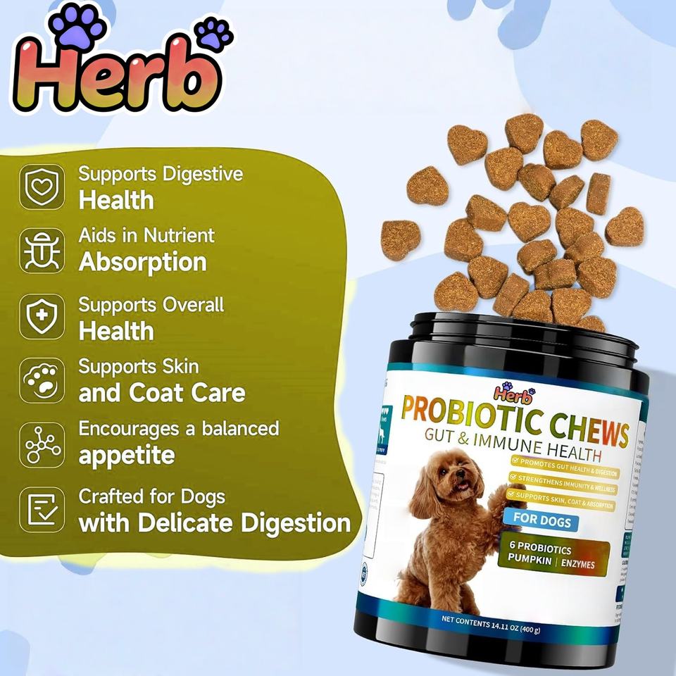 อาหารเสริมโปรไบโอติกแบบเคี้ยวเนื้อนุ่มสำหรับสัตว์เลี้ยง ยี่ห้อ OEM/ODM ผลิตภัณฑ์เสริมสร้างภูมิคุ้มกันสำหรับสุนัข รสฟักทอง