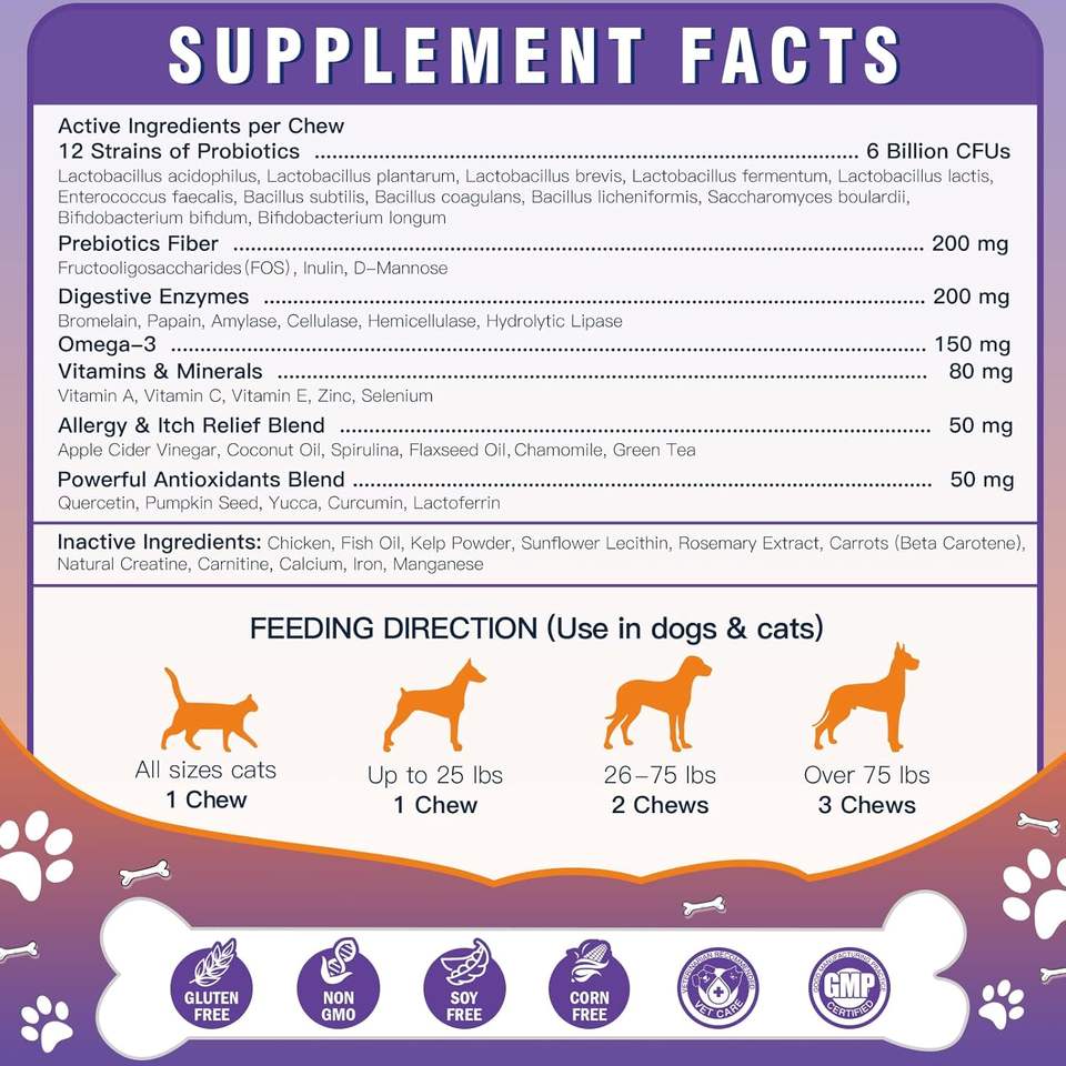 โปรไบโอติกสำหรับสุนัขแบบ OEM ODM สูตรเฉพาะ พร้อมพรีไบโอติก ช่วยเสริมสร้างจุลินทรีย์ในลำไส้ให้สมดุล เพิ่มภูมิคุ้มกัน ชนิดเคี้ยวเนื้อนุ่ม