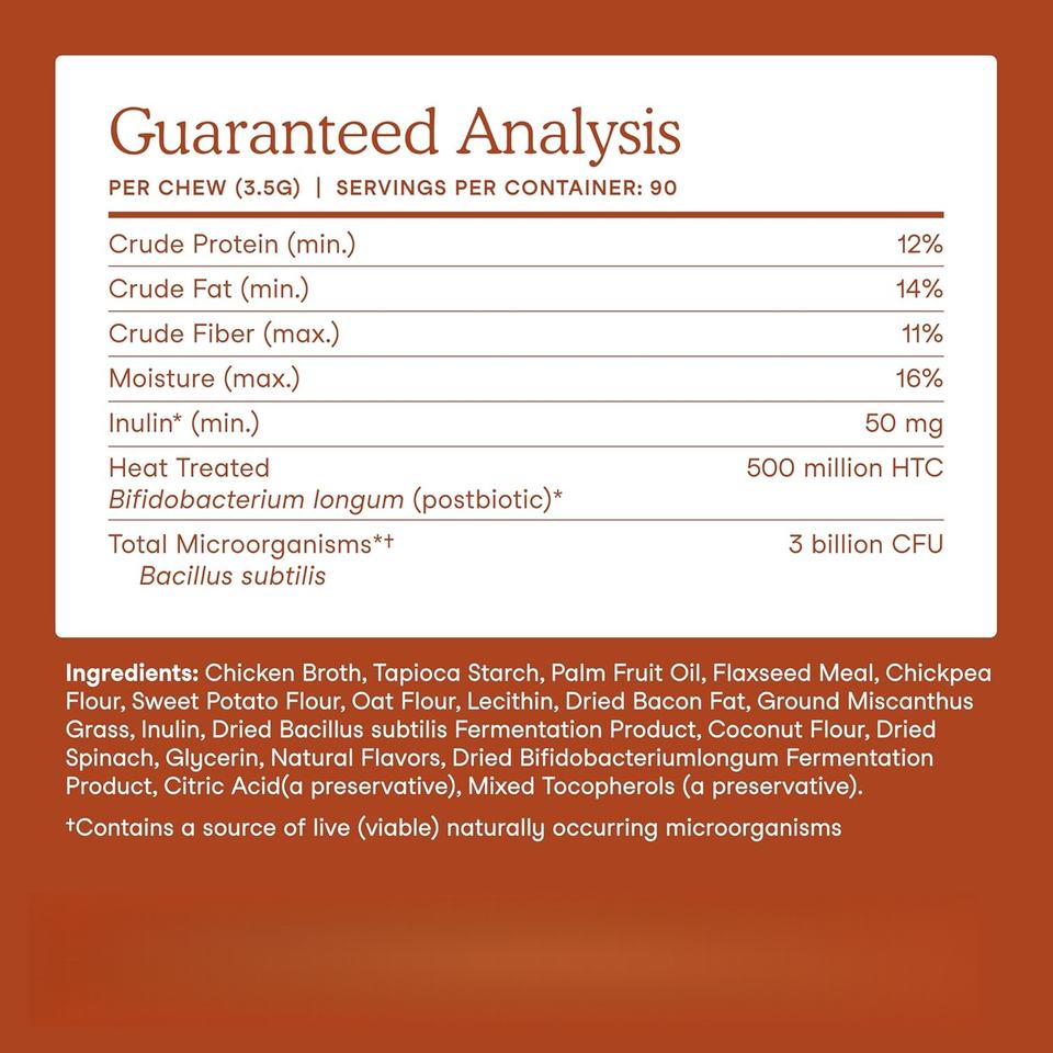 โปรไบโอติกสำหรับสุนัขแบบ OEM ODM สูตรเฉพาะ พร้อมพรีไบโอติก ช่วยเสริมสร้างจุลินทรีย์ในลำไส้ให้สมดุล เพิ่มภูมิคุ้มกัน ชนิดเคี้ยวเนื้อนุ่ม