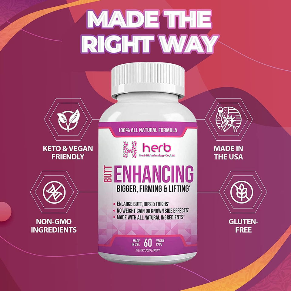 รับผลิต/ออกแบบผลิตภัณฑ์เสริมความงามภายใต้แบรนด์ของคุณเอง ผลิตภัณฑ์เสริมอาหารสมุนไพรสำหรับผู้ใหญ่ แคปซูลเสริมก้นให้ดูอวบอิ่ม 60 แคปซูล