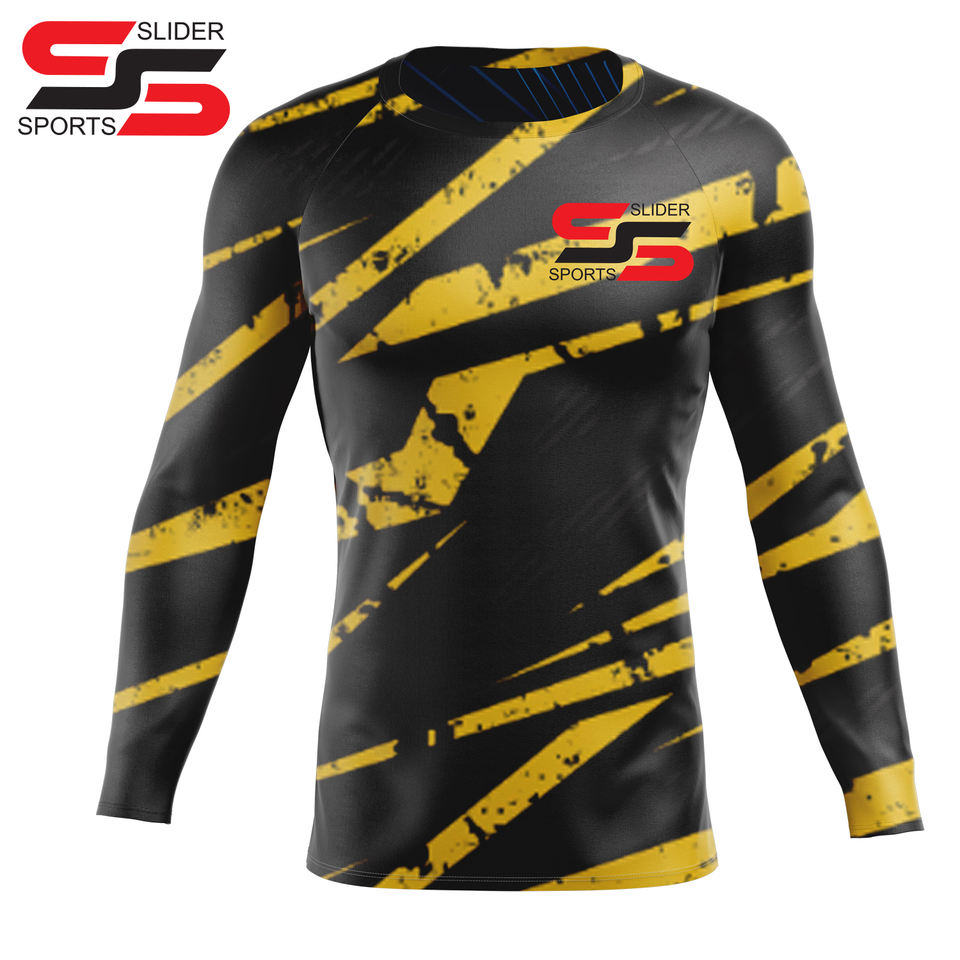 เสื้อออกกำลังกายเล่นกระดานโต้คลื่นผ้าสแปนเด็กซ์สำหรับผู้ชายพิมพ์ซับลิเมชัน