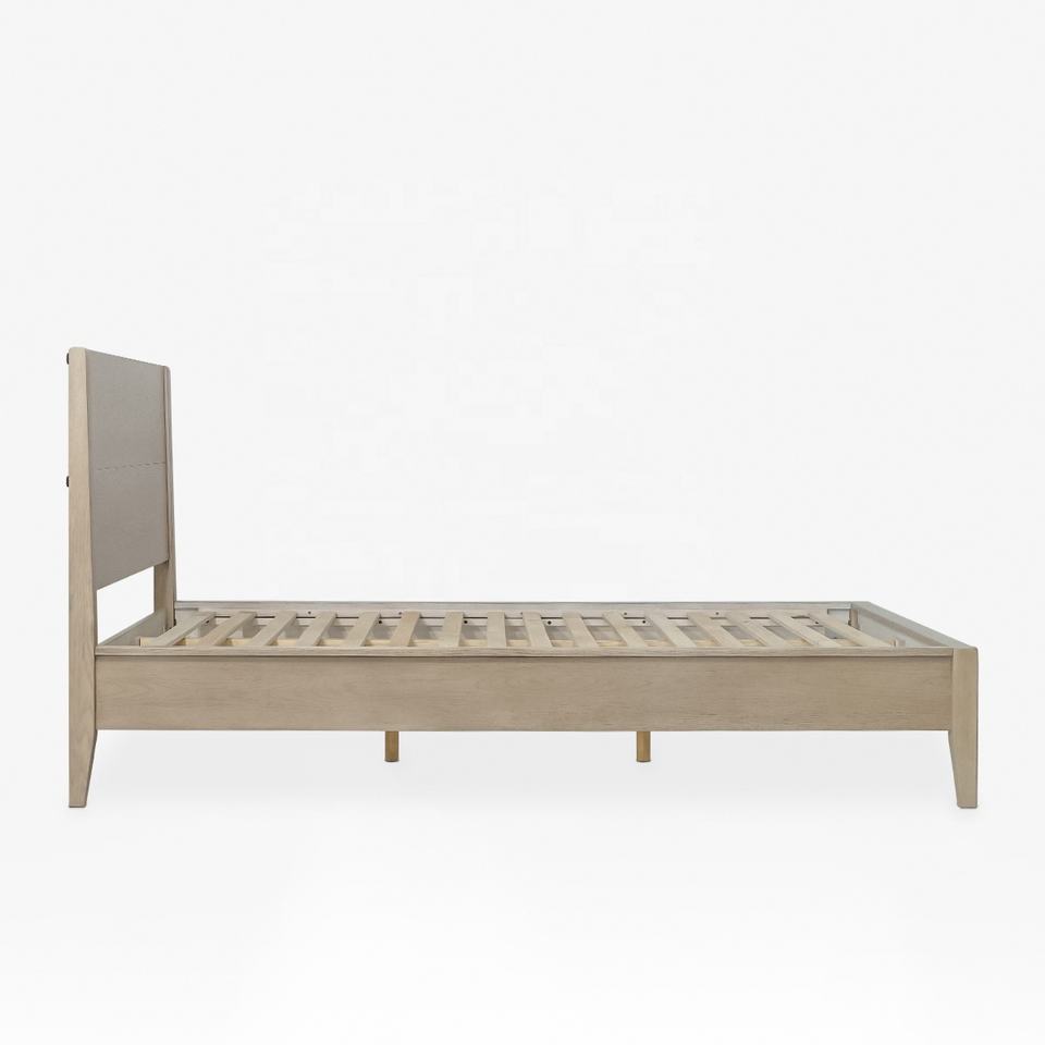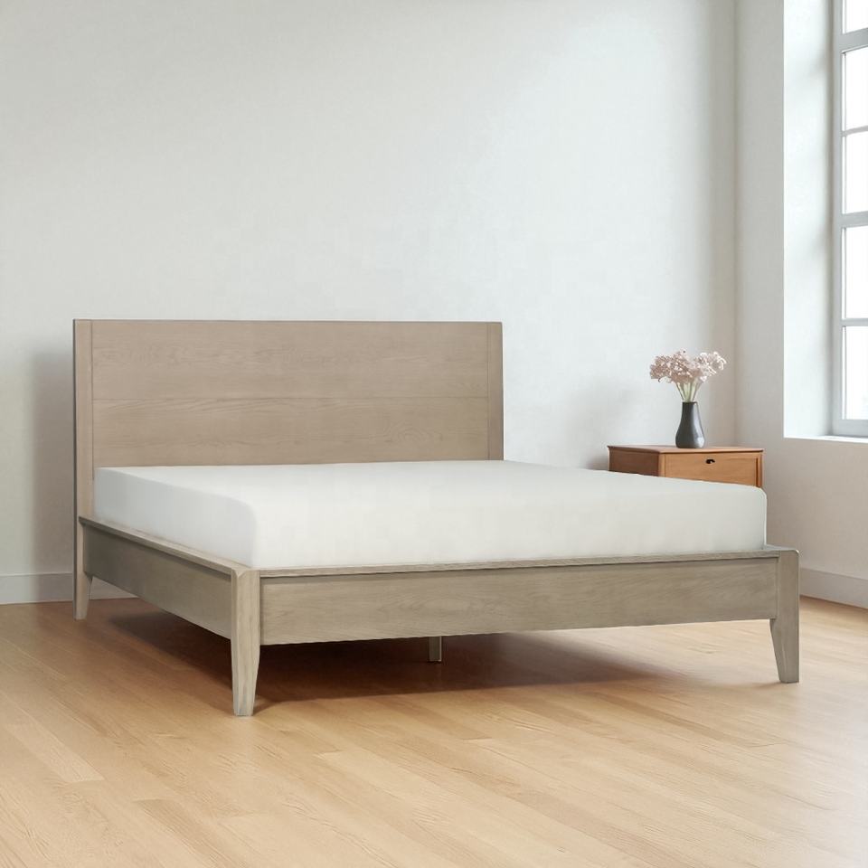 เตียงไม้โอ๊คเนื้อแข็งสไตล์มินิมอลกรอบขนาดควีนไซส์แบบไม่ต้องใช้เครื่องมือเฟอร์นิเจอร์เตียงไม้จากเวียดนาม