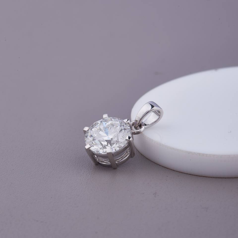 จี้เพชรทรงกลมแบบโซลิแทร์เพาะเลี้ยงในห้องปฏิบัติการ OEM ODM ตัวเรือนทอง 9KT สีเหลือง/สีโรส/สีขาว ประดับแบบหนามเตย ชุบโรเดียม รับรองโดย IGI