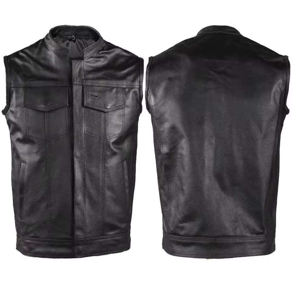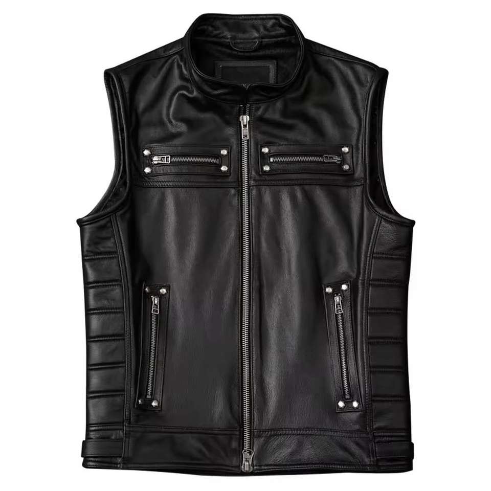 เสื้อกั๊กหนังบริการ ODM สำหรับผู้ชายเสื้อกั๊กหนังสำหรับมอเตอร์ไซด์