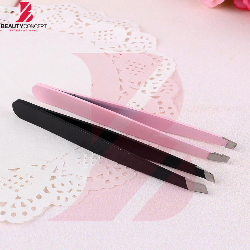 บริการ OEM ODM ที่คีบขนคิ้วสีดำชมพูสุดฮิต ทันสมัย ที่ดึงขนคิ้วแบบเฉียง คลิปสแตนเลส อุปกรณ์แต่งหน้า