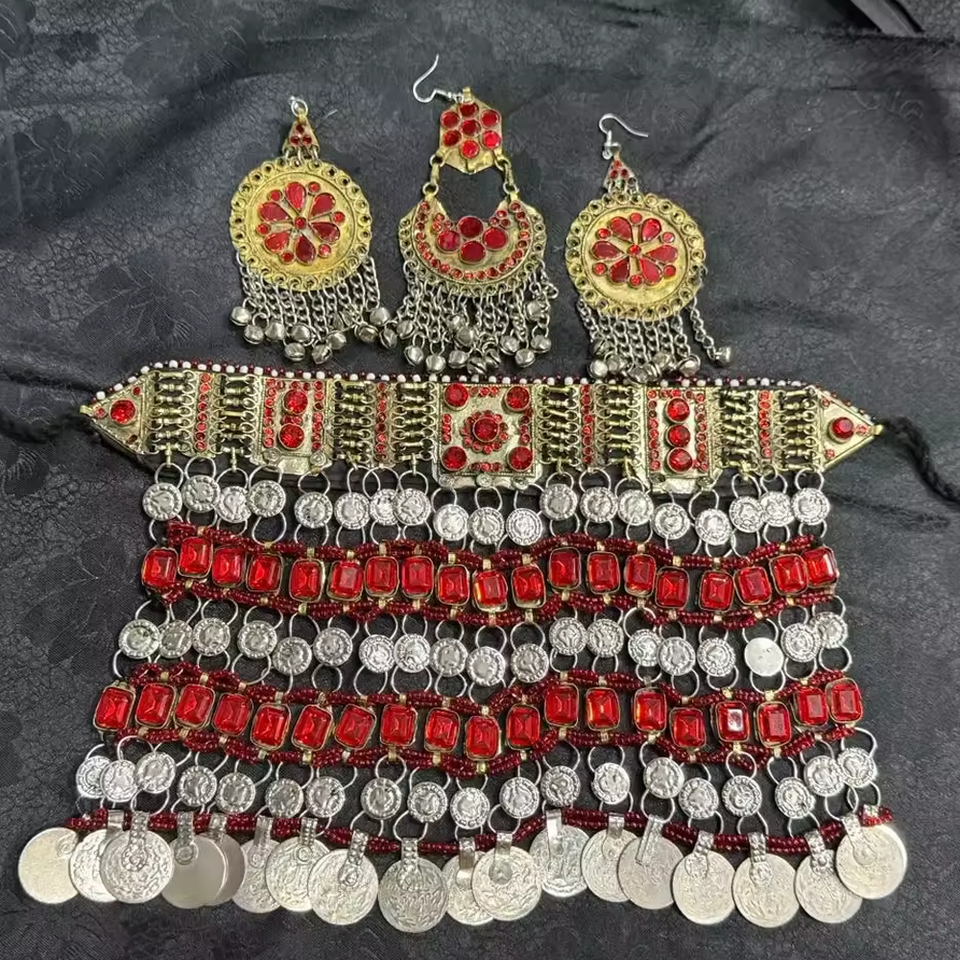 ชุดสร้อยคอและต่างหูสไตล์วินเทจสำหรับผู้หญิงงานปาร์ตี้ Afghani kuchi สำหรับผู้ใหญ่