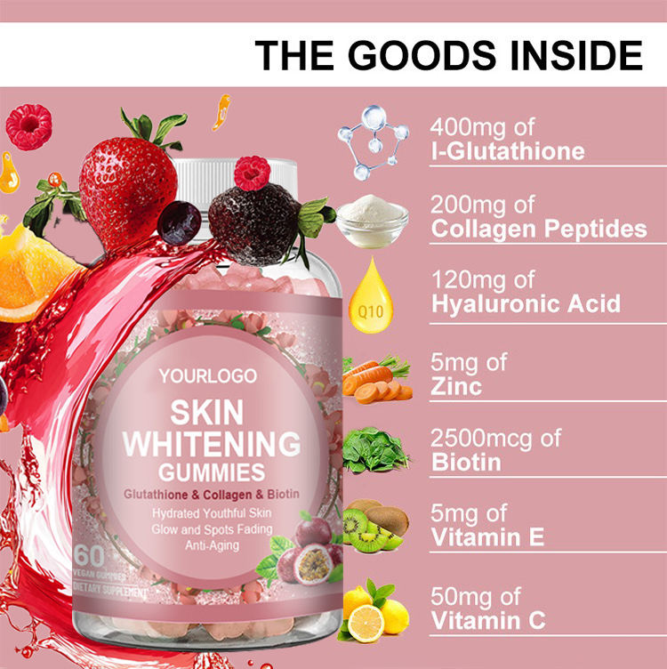 กัมมี่ไวท์เทนนิ่งที่มีคอลลาเจนและวิตามินซีสารอาหารเสริมเพื่อสุขภาพผิวสำหรับผู้หญิง