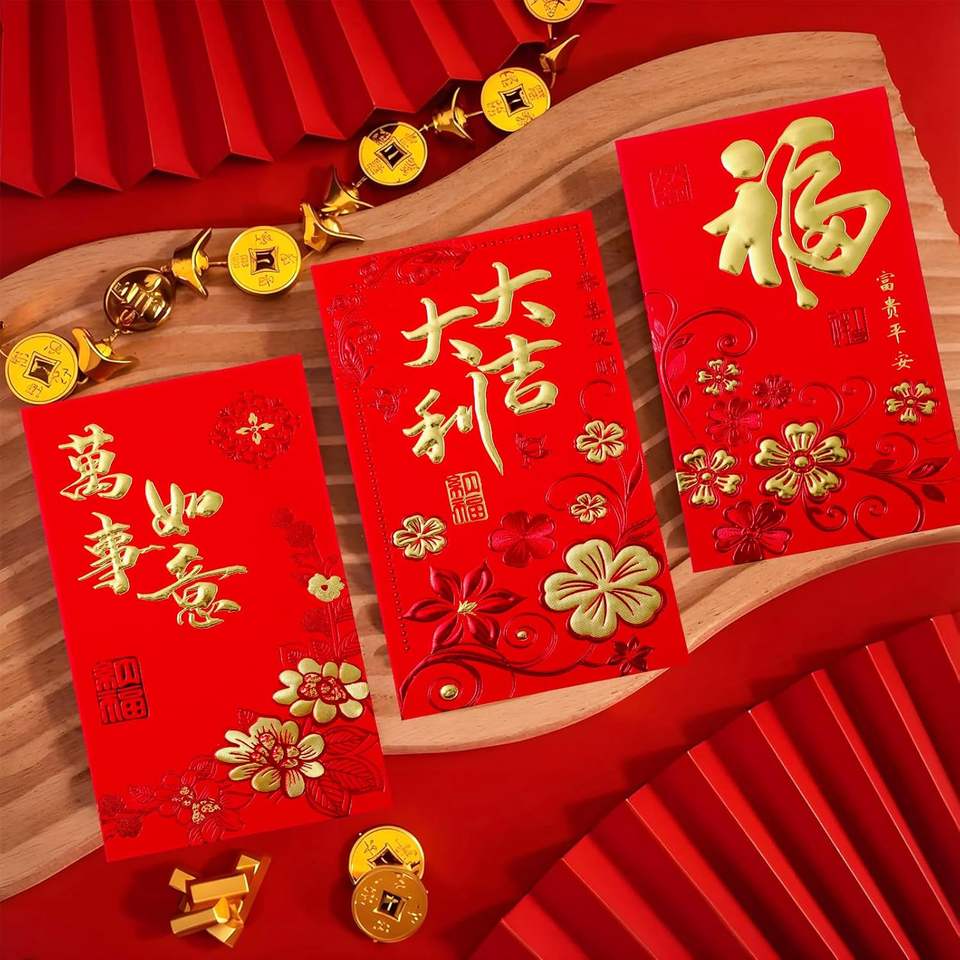 ซองอั่งเปาแดง OEM ODM Soon Grow 2026 ขนาดใหญ่ ลายดอกเหมย สำหรับตรุษจีน ปีมังกร อุปกรณ์เทศกาล