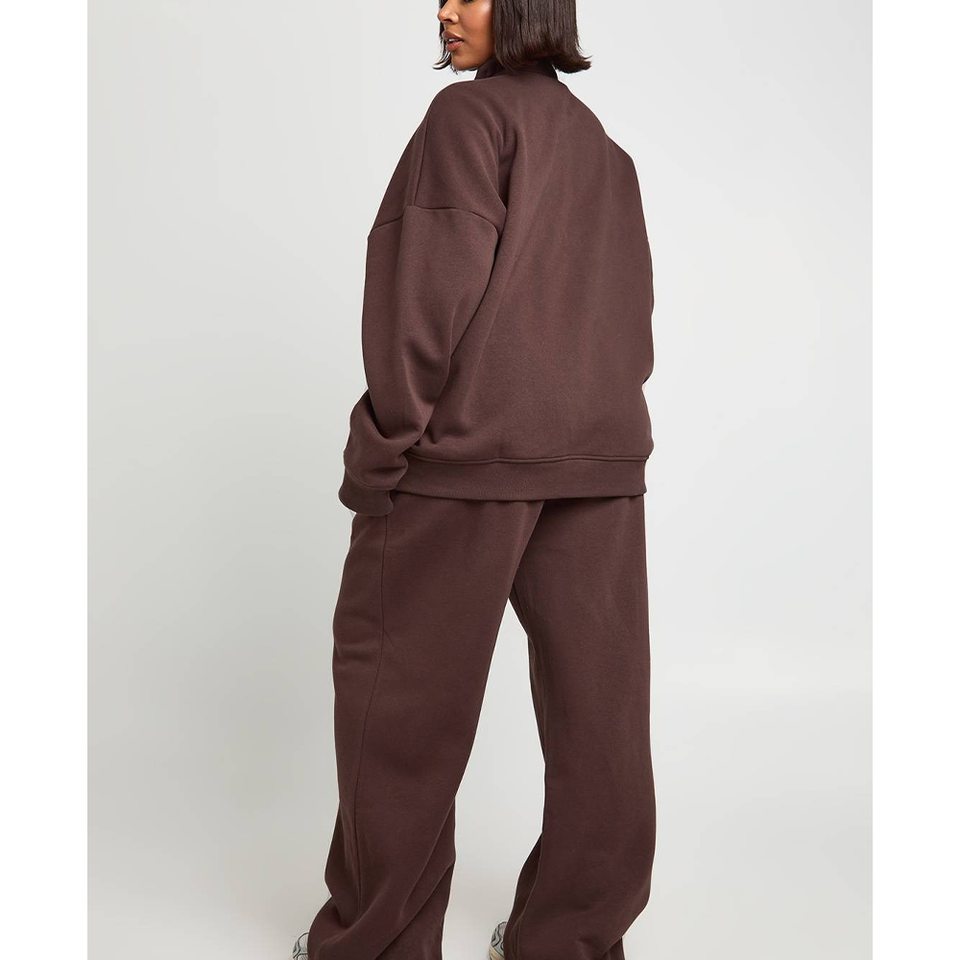 ชุดออกกำลังกายผู้หญิงแบบสปอร์ต OEM ODM สตรีทแวร์ พิมพ์ลาย DTG ตามสั่ง เสื้อแจ็คเก็ตซิปไหล่ตก ผ้าฟลีซโพลีเอสเตอร์ ชุดวอร์ม
