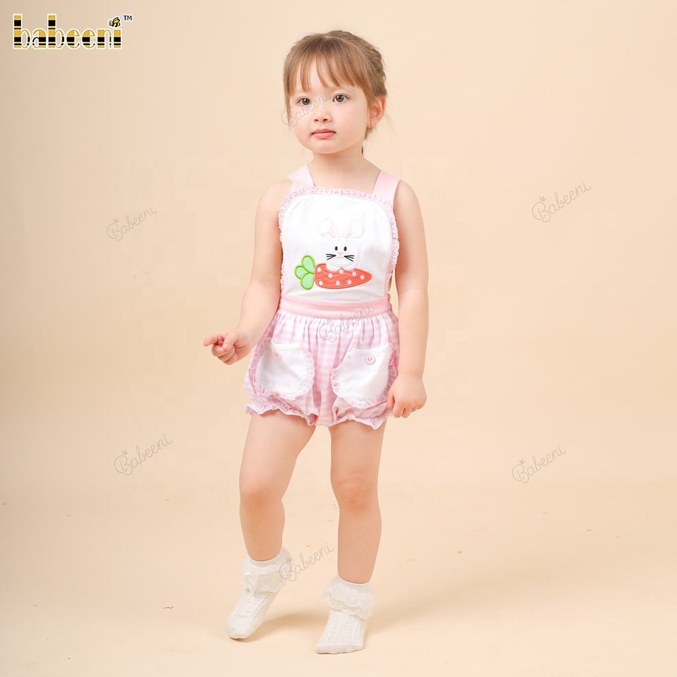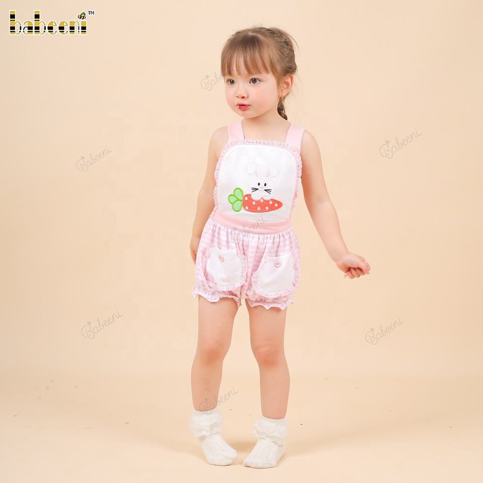 ชุดรอมเปอร์เด็กผู้ชายแขนสั้นสำหรับฤดูร้อน แบบกระดุมแป๊ก สีชมพูขาว แต่งแอพพลิเค ผ้าฝ้ายถัก ยี่ห้อ OEM ODM ผ่านมาตรฐาน OEKO-TEX