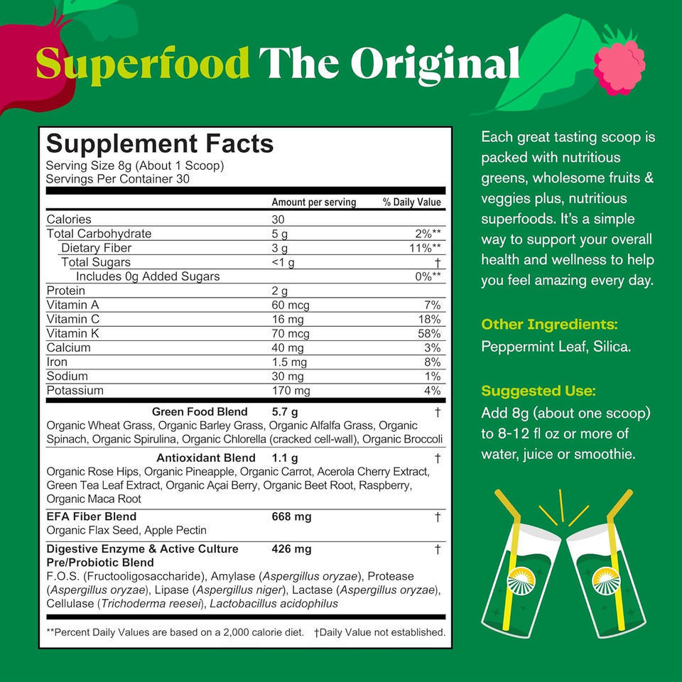 ผงชาเขียวออร์แกนิก OEM/ODM ซูเปอร์กรีน พาวเดอร์ ให้พลังงาน วิตามินบี 12 วิตามินบี 3 และสารต้านอนุมูลอิสระ สำหรับคนทานวีแกน