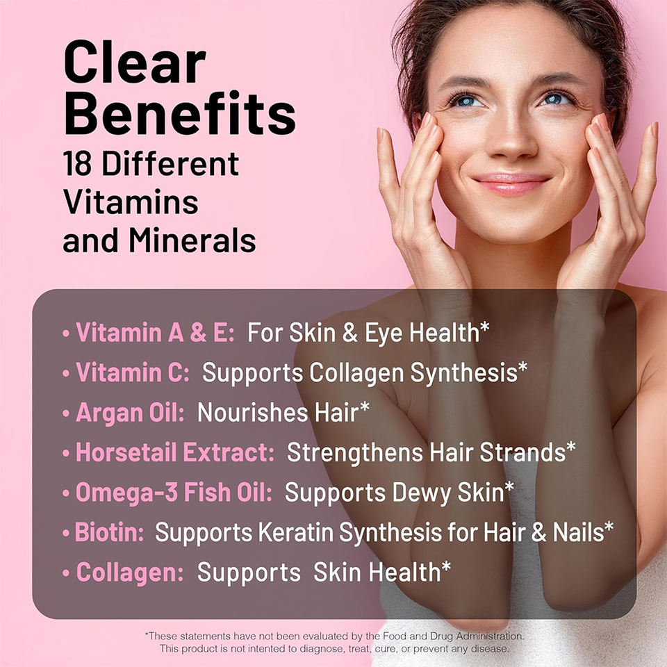 ส่วนผสมหลัก:วิตามิน, ไบโอติน, คอลลาเจน, โอเมก้า 3