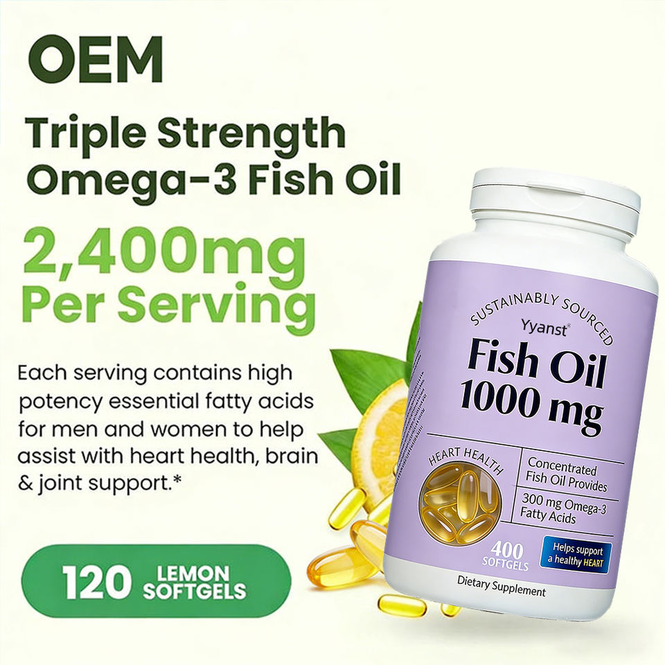 น้ำมันปลาโอเมก้า 3 แบบซอฟเจล OEM/ODM สูตรเข้มข้นสามเท่า สำหรับผู้ชายและผู้หญิง บำรุงหัวใจ สมอง และข้อต่อ พร้อมตัวอย่างทดลองใช้ฟรี