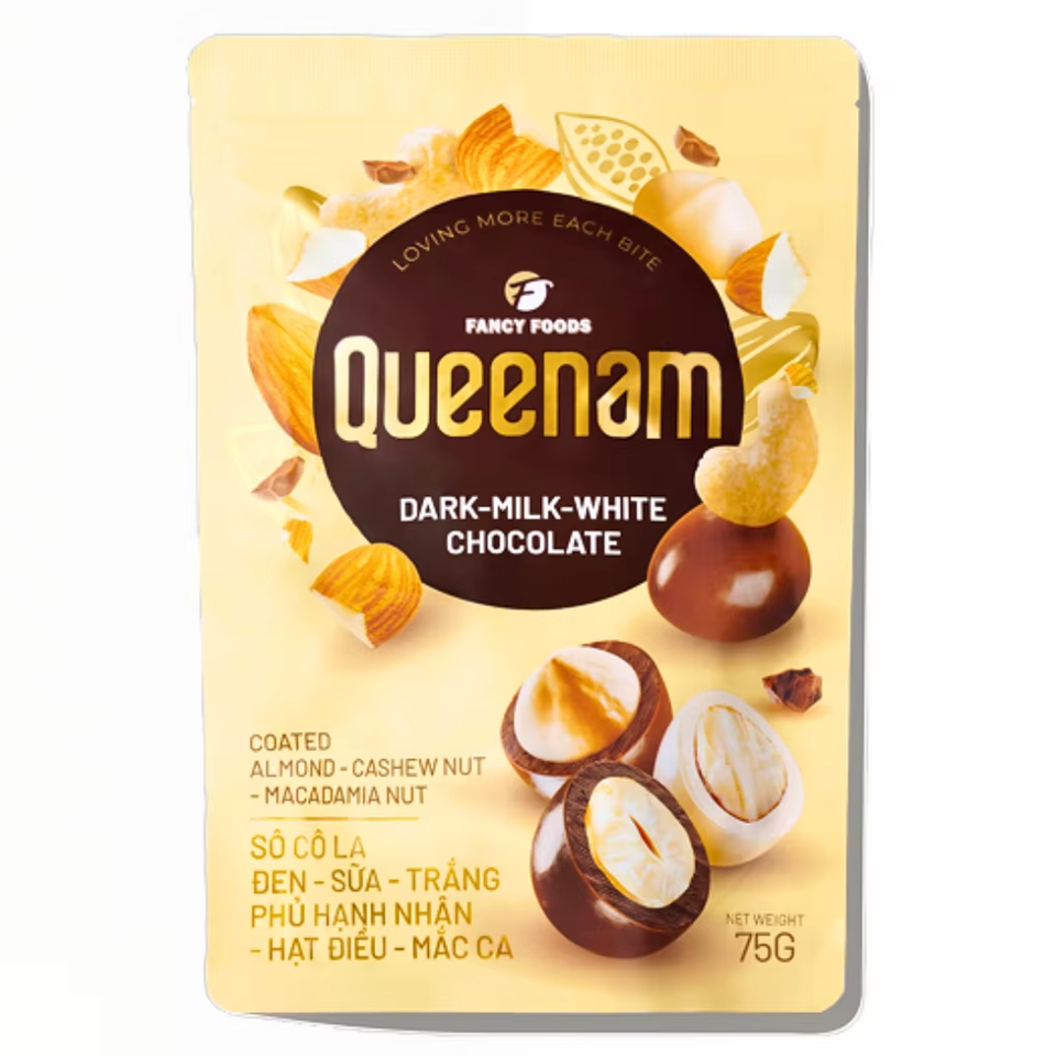 ช็อกโกแลตดรากีพรีเมียม OEM/ODM จากเวียดนาม ฮาลาล 75 กรัม ผสมถั่วเคลือบ ผสมอัลมอนด์ แคชชู มาคาเดเมีย รสขมหวาน ขนมควีนแอม ส่งออกยอดนิยม