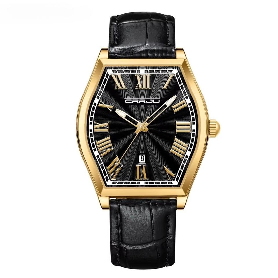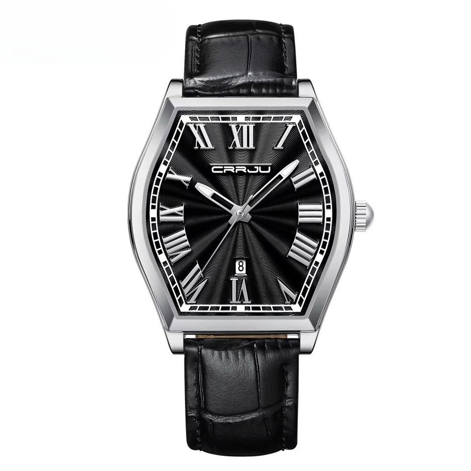 นาฬิกาข้อมือผู้ชายสไตล์วินเทจ OEM ODM สายหนัง ดีไซน์แปลกตา หน้าปัดตัวเลขโรมันคลาสสิก เรืองแสง ควอตซ์ กันน้ำ 3ATM