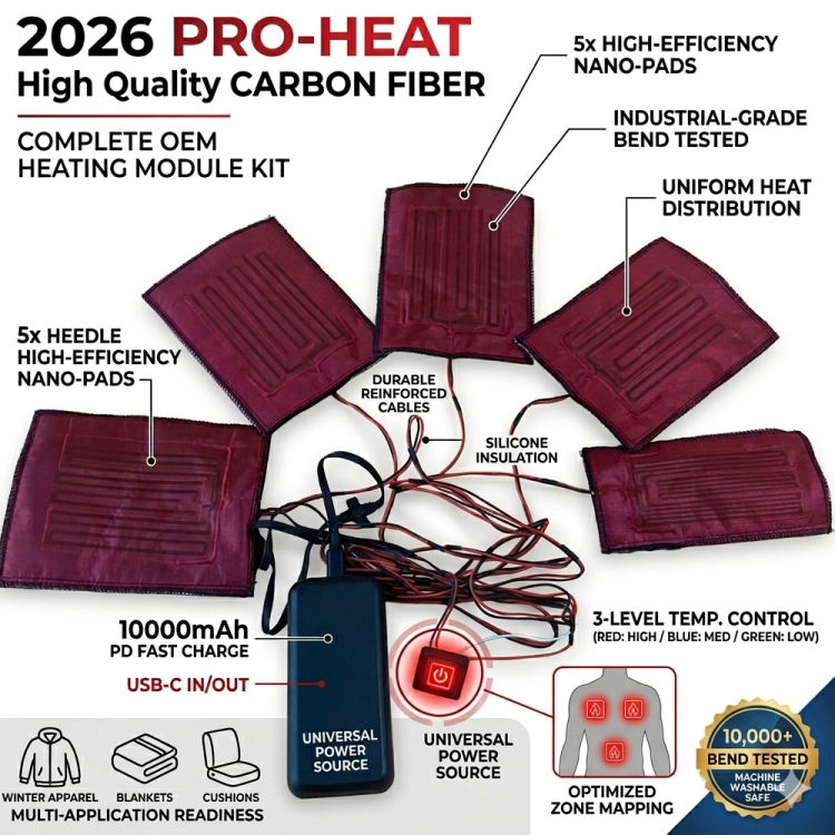 แผ่นทำความร้อนไฟฟ้าคาร์บอนไฟเบอร์แบบ OEM ODM ล้างทำความสะอาดได้ ให้ความร้อนเร็ว พร้อมพอร์ตเชื่อมต่อ Type-C สำหรับเสื้อผ้าอุ่น