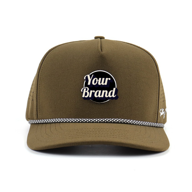 หมวกเบสบอลกีฬาสำหรับทุกเพศหมวกกอล์ฟเชือกโพลีเอสเตอร์ตัดด้วยเลเซอร์กันน้ำ5แผงหมวกออกแบบสำหรับสไตล์ของคุณ