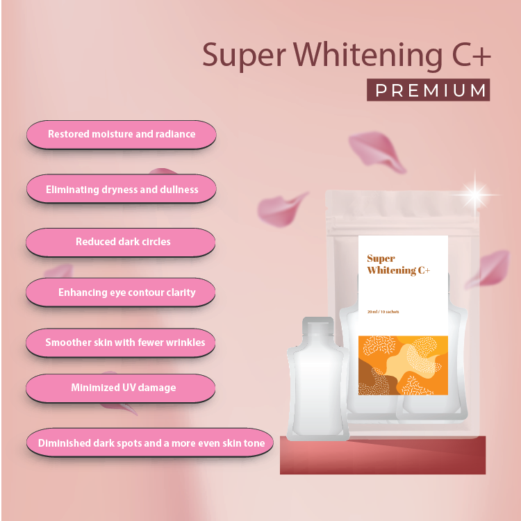 เครื่องดื่มเพิ่มความขาว ODM ของคุณปลดล็อคความงามตามธรรมชาติของคุณสุดยอดไวท์เทนนิ่ง C + เครื่องดื่มประจำวันเพื่อความสดใสชุ่มชื้นคุณ