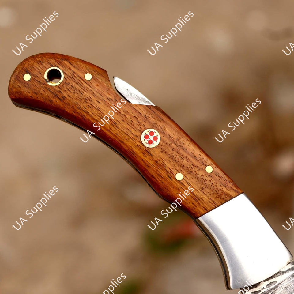 มีดพับเหล็กดามัสกัสทำมือเกรดอุตสาหกรรมสำหรับตั้งแคมป์และล่าสัตว์ ด้ามไม้มะกอก รับผลิตแบบ OEM/ODM ขายส่งจำนวนมาก