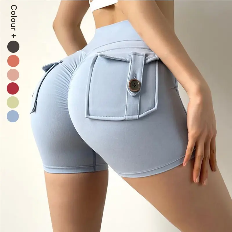 กางเกงขาสั้นออกกำลังกายเล่นโยคะของผู้หญิงกางเกงเลกกิ้งลายพีชบั้นท้ายเซ็กซี่