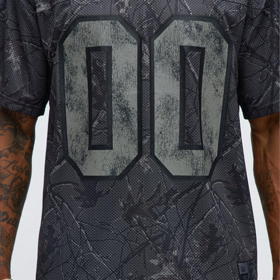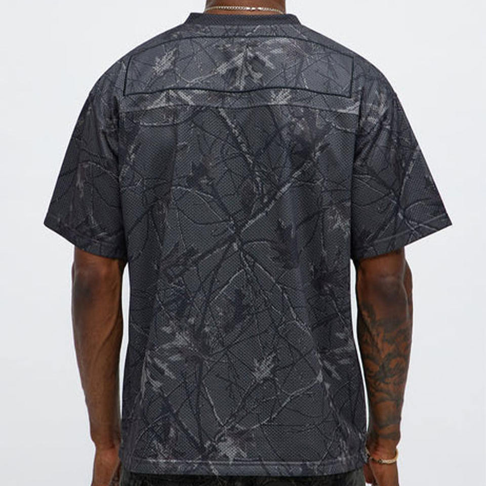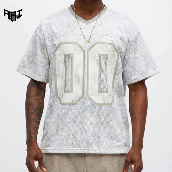 เสื้อยืดคอกลมแขนสั้นผ้าฝ้ายสไตล์ฟุตบอลสำหรับผู้ชาย แบบตาข่าย ปักลายกราฟิก ขายส่ง OEM ODM รับผลิตเสื้อผ้าสตรีทแวร์ OEM ODM