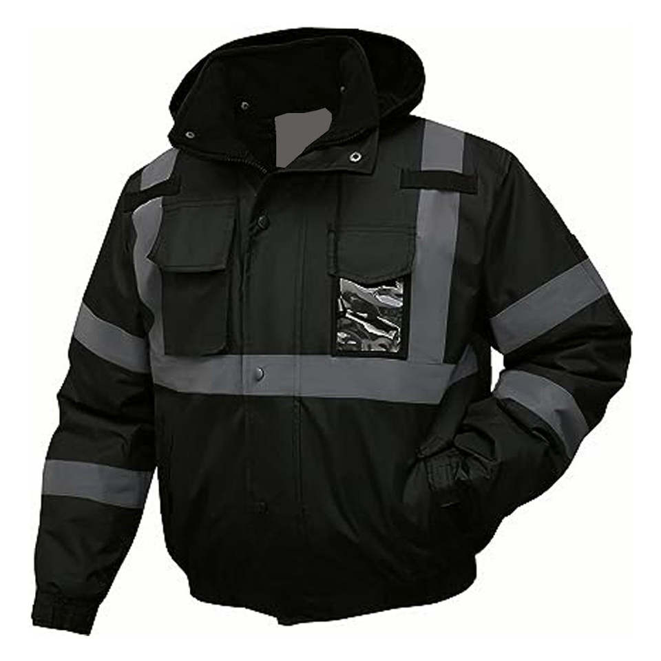 เสื้อแจ็กเก็ตมีฮู้ดเพื่อความปลอดภัยในการทำงานของผู้ชายสะท้อนแสง