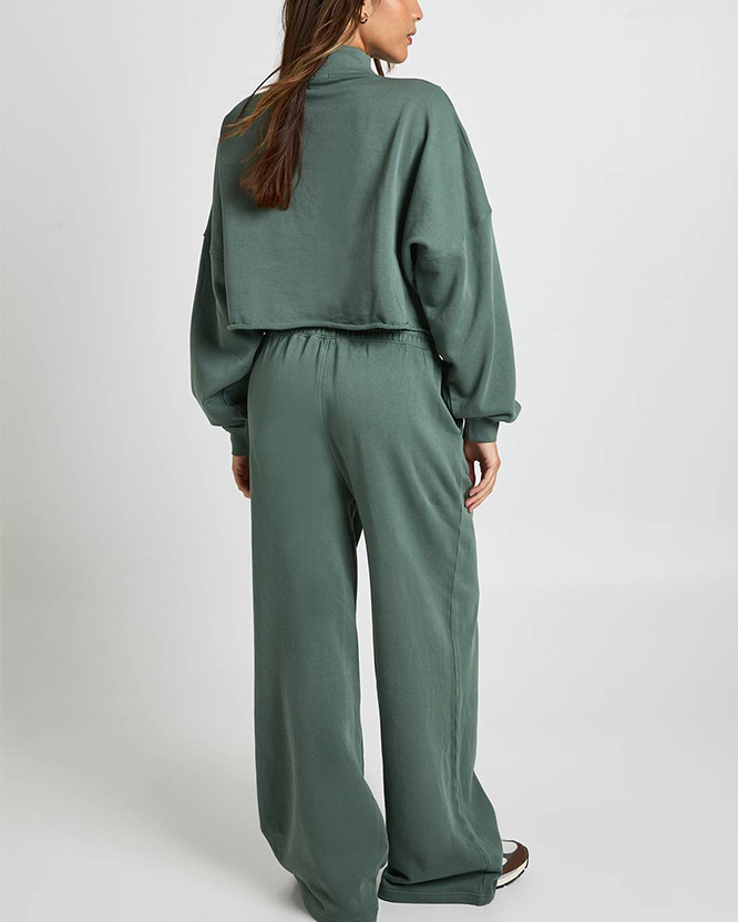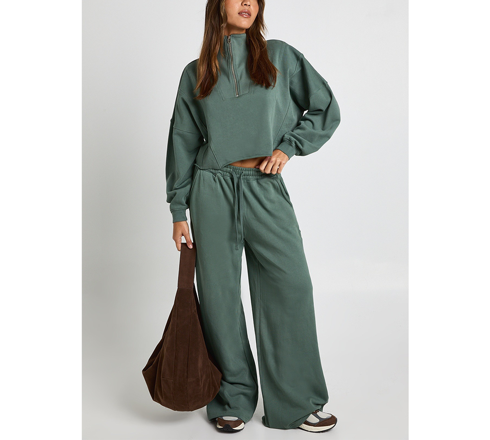 ชุดวอร์มผ้าฟลีซโพลีเอสเตอร์ระบายอากาศสำหรับฤดูหนาว OEM ODM เสื้อครอปครึ่งซิปสไตล์ลำลองแนวสตรีท กางเกงเอวสูงเข้าชุดสำหรับผู้หญิง
