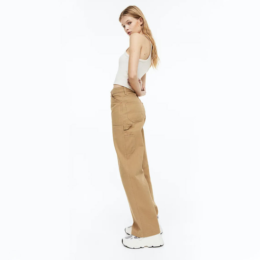 กางเกงคาร์โก้ทรงหลวมสไตล์วินเทจเรียกว้างของผู้หญิงกางเกงผ้าแคนวาสโอเวอร์ไซส์