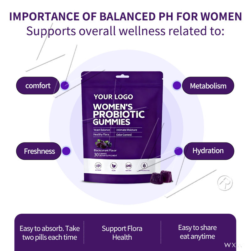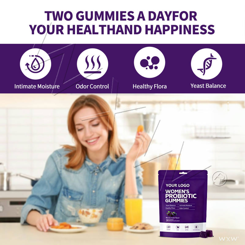 OEM/ODM gummies โปรไบโอติกของผู้หญิงธรรมชาติสำหรับพืชมีสุขภาพดียีสต์ความสมดุลและการเผาผลาญเพิ่ม