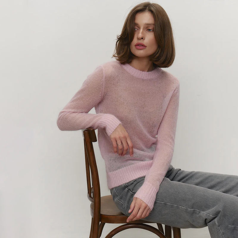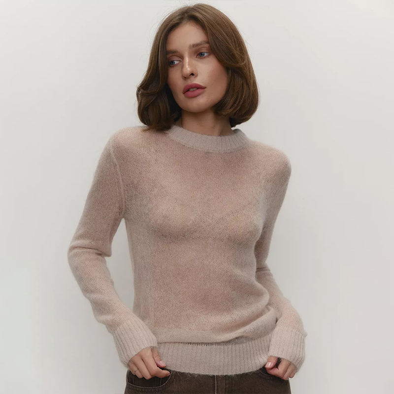 เสื้อสเวตเตอร์คอกลมถักด้วยคอมพิวเตอร์ของผู้หญิงเสื้อสเวตเตอร์เสื้อสวมหัวสีลูกกวาดต่อต้านริ้วรอยปรับแต่งได้