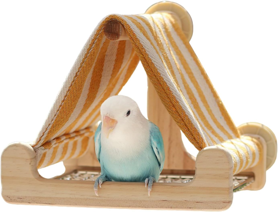 บ้านนกไม้สีเหลืองทันสมัยแบบ OEM ODM พร้อมฐานสแตนเลส สำหรับนกแก้ว นกเล็ก ที่หลบซ่อน ที่พักผ่อน แบบอินเทอร์แอคทีฟ