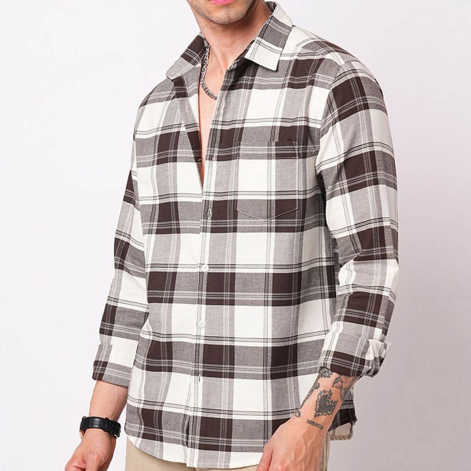 เสื้อเชิ้ตผ้าแฟลนเนลผู้ชาย OEM/OEM พิมพ์ลายปักโลโก้ตามสั่ง ไซส์ใหญ่ ผ้าฝ้าย 100% แขนยาว สำหรับผู้ชาย